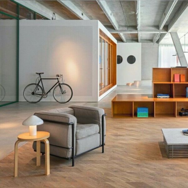 Interface bietet LVT in Holz-, Stein- und Betonoptik an, abgestimmt auf die Teppichplattenkollektionen. Der Clou: Teppichplatten und LVT sind höhenkompatibel. Sie lassen sich ohne Übergangsschienen direkt nebeneinander verlegen. Teppich im Arbeitsbereich, LVT im Gang, Teppich im Sitzungszimmer – ein durchgängiger Boden in zwei Materialien, ein stimmiges Bild. Keine Stolperkante, kein Bruch.
