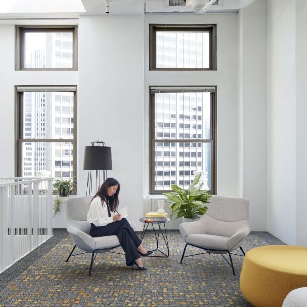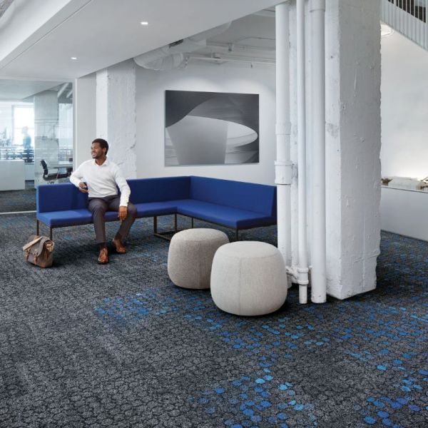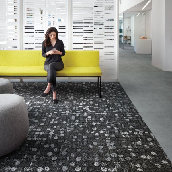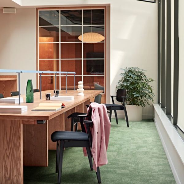 Trispace plant Bodenbeläge als Teil der Raumgestaltung. Mit Teppichplatten von Interface, EGE und weiteren Herstellern. Mit LVT für Nassbereiche. Und mit eigenen Baumanagern, die das Projekt von der Musterauswahl bis zur Verlegung begleiten.